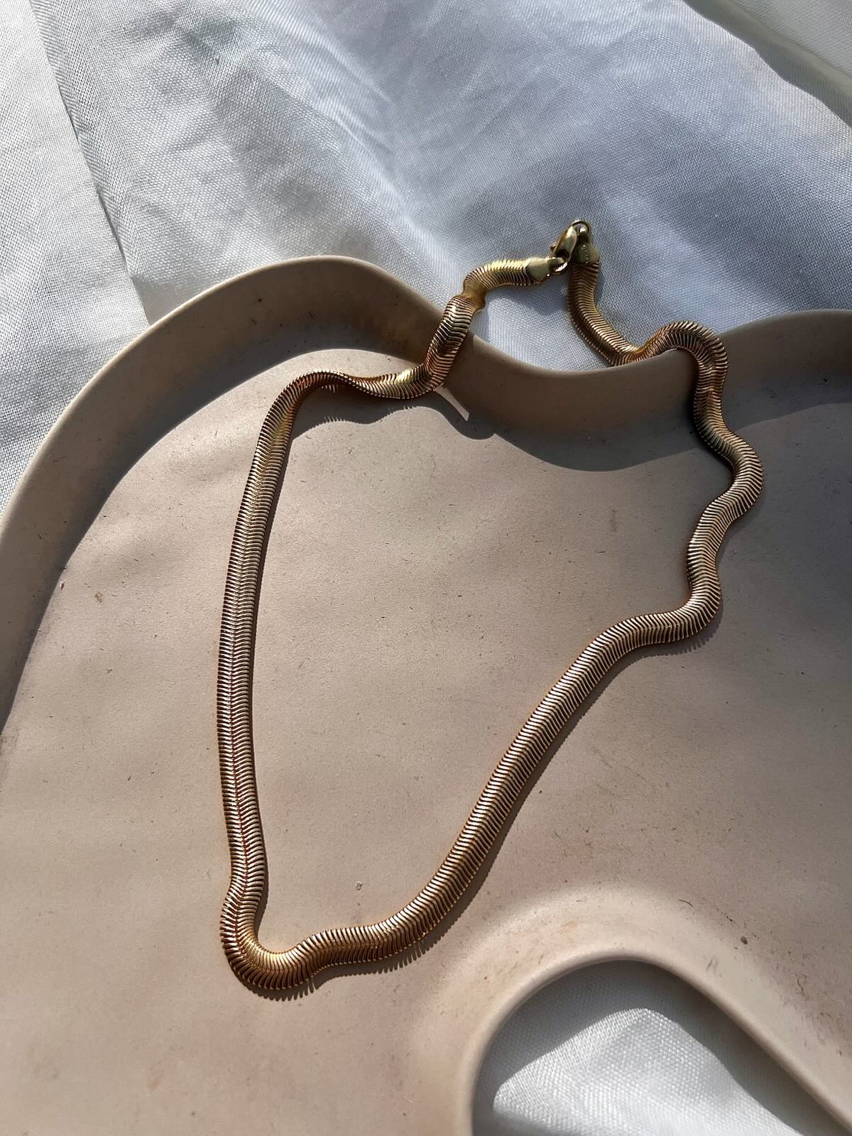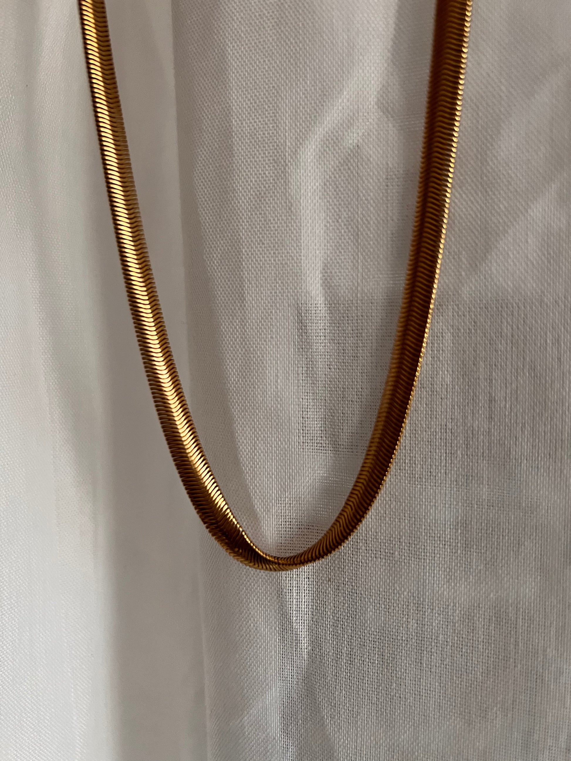 Add a bold twist to your look with this chunky herringbone chain, crafted in dazzling 18k gold fill. Its serpentine design catches the light with every move, making it the perfect playful statement piece to elevate any outfit. Durable yet stylish, this chain is built to shine day after day.