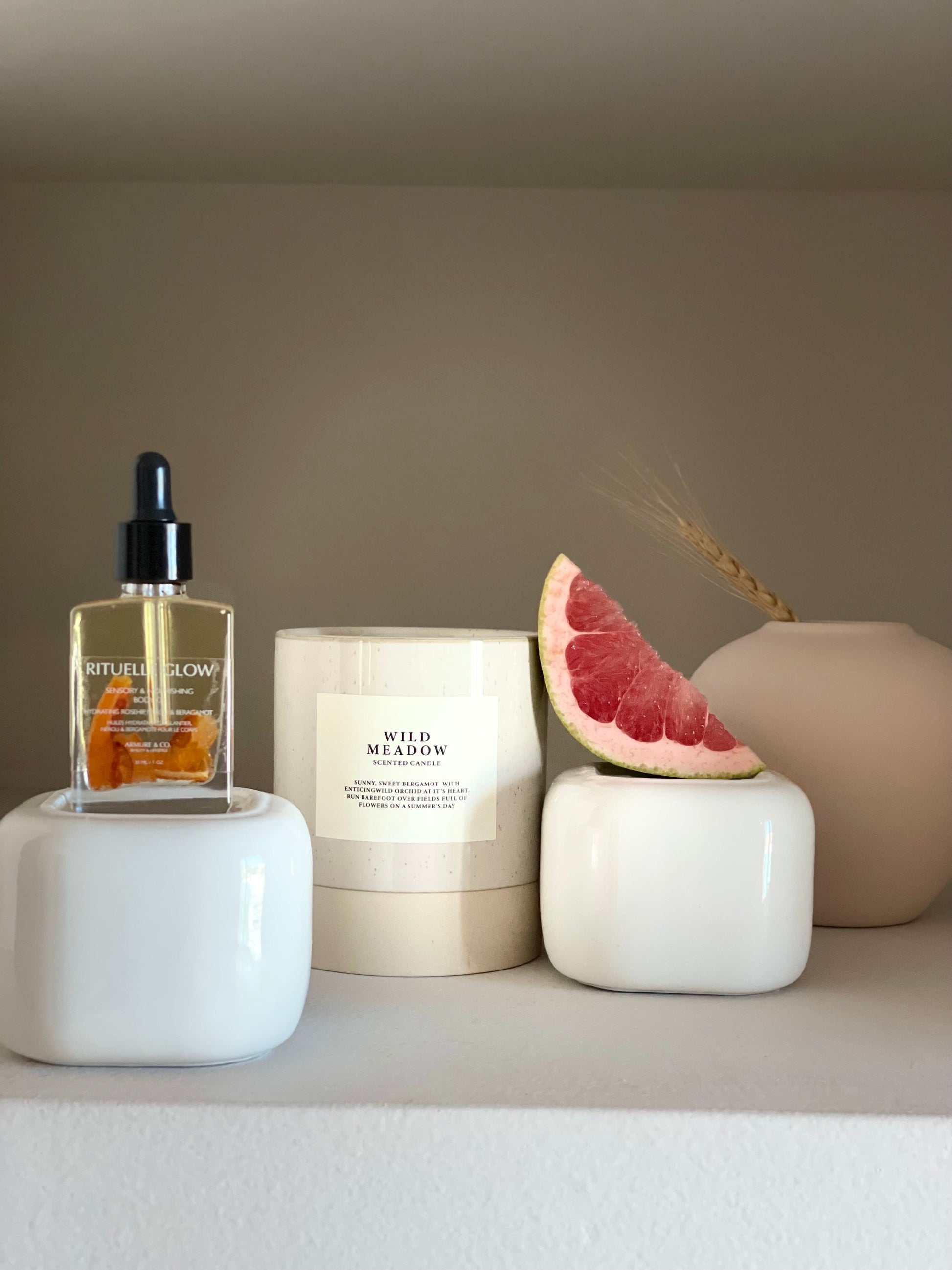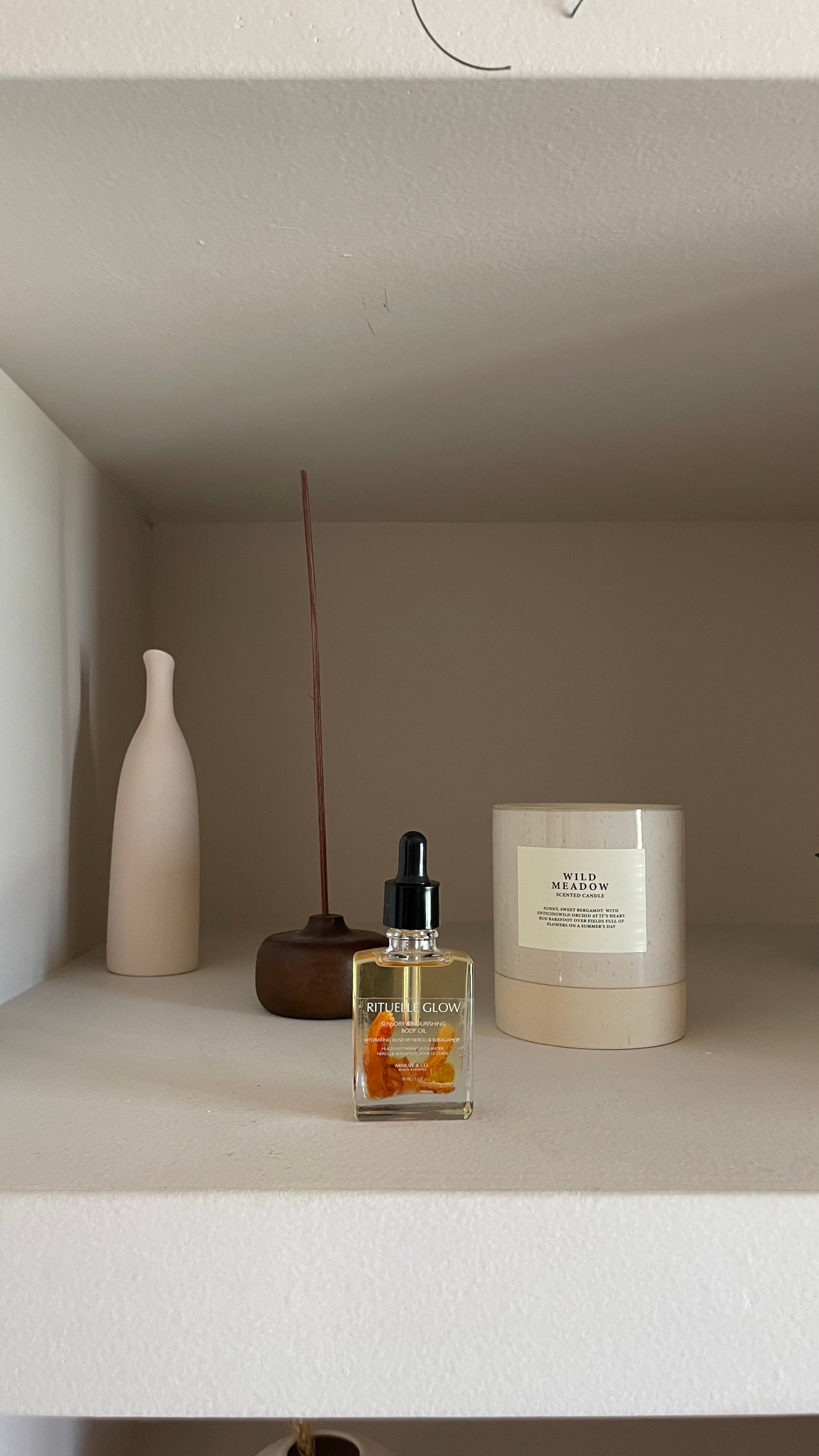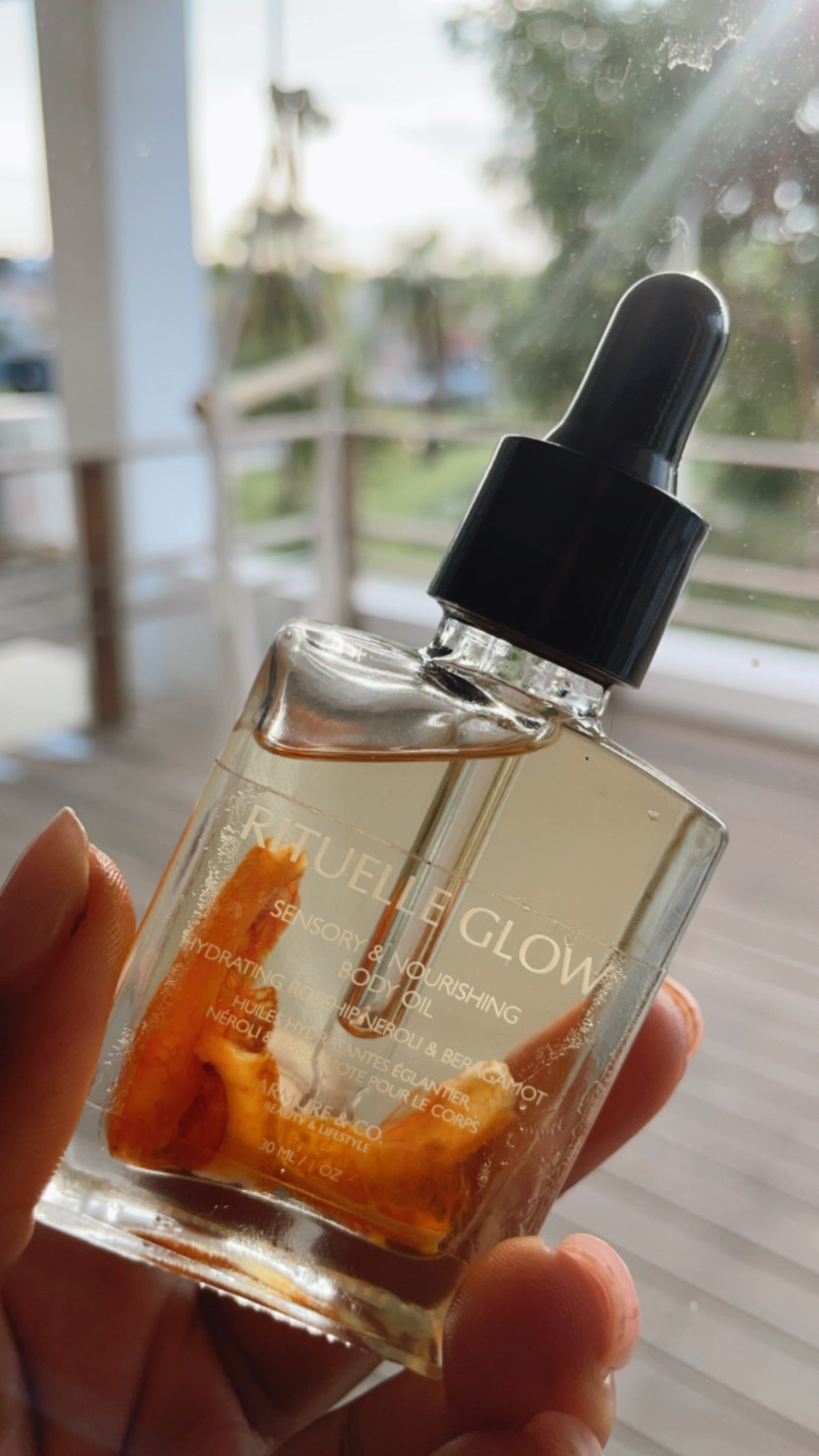 Sun kisses Tangerine, sweet vanilla, neroli and oud make this beautifying goddess body oil lushes and mysterious. Inspired by sipping Aperol seaside in the Amalfi Coast.
